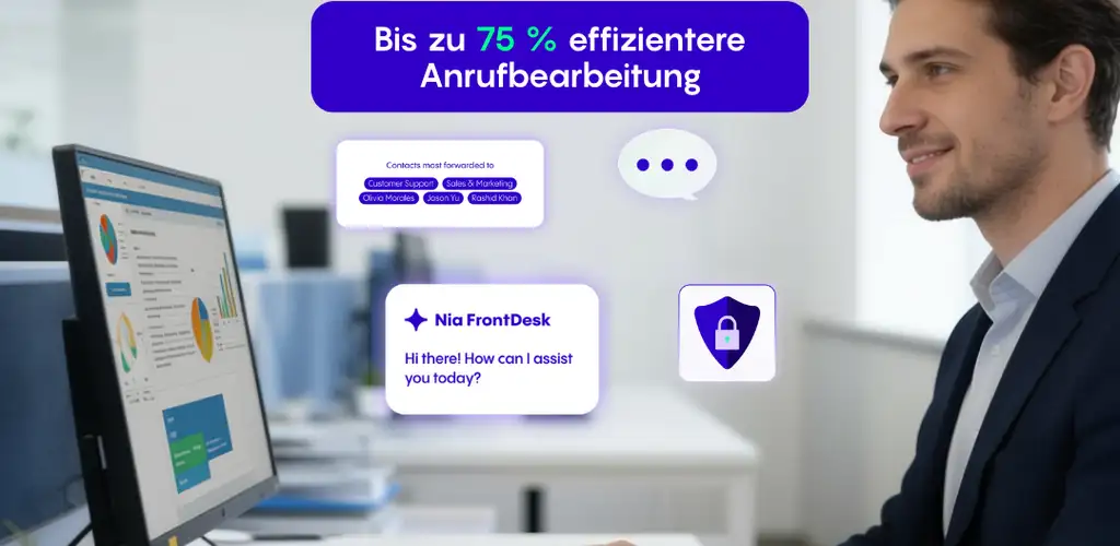 Nia FrontDesk nimmt den Anruf an, klärt Anliegen oder Ansprechpartner und stellt gezielt durch